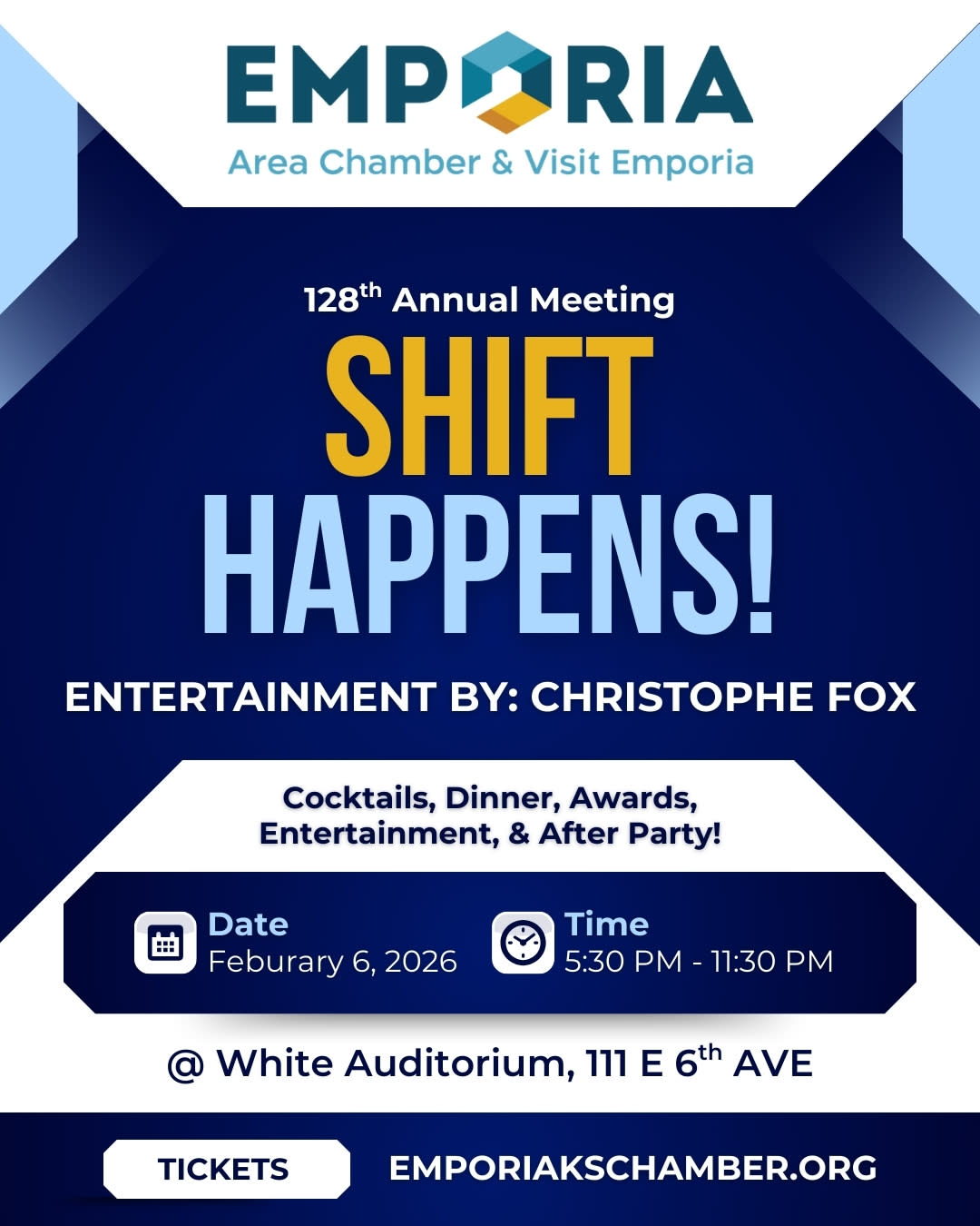 Shift Happens is a high-energy annual meeting celebrating the businesses and leaders pushing our community forward. Expect recognition, laughter, and a clear message: change is here and we’re leading it.